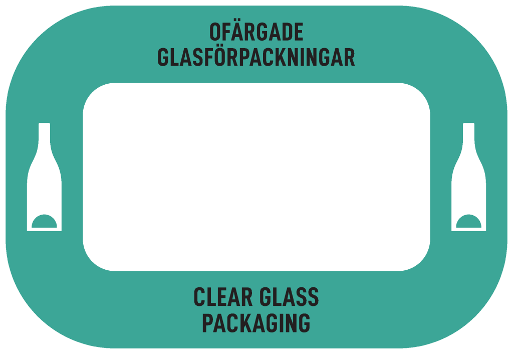 Sticker with the text “Clear Glass Packaging,” designed for the Royal C Eco sorting unit.