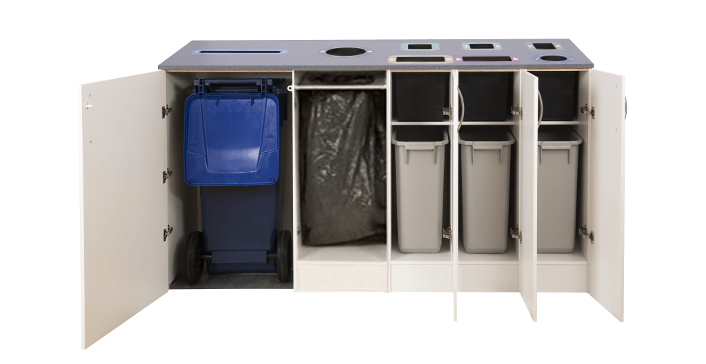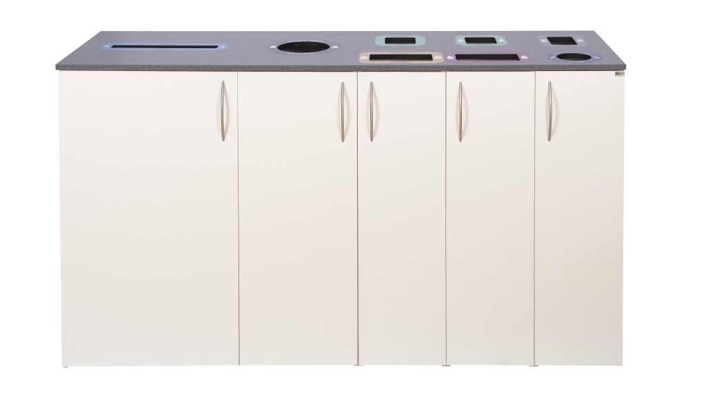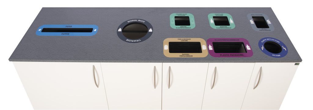 The Royal C range is based on the Royal series, which consists of different modules that can be tailored to suit every need. The selected combination is crowned with a customized top, with the insertion slot and the marking you selected. The tilting top prevents the waste sorting furniture from being used as a relieving surface. When each faction has its own custom section it becomes clear and simple to sort the waste.